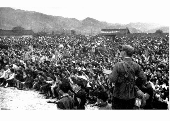 1977年4月25日庆县人民法院召开公判大会场景