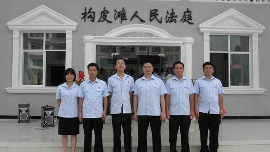 构皮滩法庭干警在新建办公楼前合影