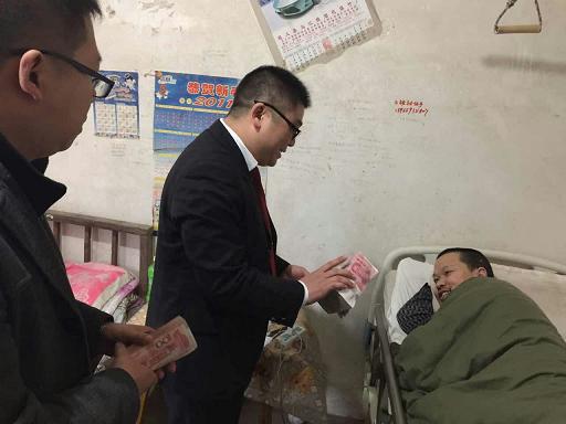 2014年10月16日,因发生在余庆县松烟镇的一起交通事故,导致闫某文颈椎、脊髓等多部位受伤,治疗后仍不能行走,终生瘫痪。闫某文委托律师于2015年6月对其因伤所受经济损失向余庆法院提起诉讼,经审理,法院判决事故责任人之一杨某春(余庆籍)承担赔偿责任13万余元。因另一责任人不服判决,向遵义中院提出上诉,二审维持原判。判决后效后,杨某春未按判决履行,闫某文向余庆法院申请执行。在执行中,法官穷尽执行举措,对杨某春反复释明拒不执行的法律后果,杨某春于1月3日上午主动交清全部执行款13万余元。为了让闫某文尽早拿到执行款,过上欢乐祥和的春节,承办法官决定立即将执行款送到闫某文家中,于是出现了开头的一幕。